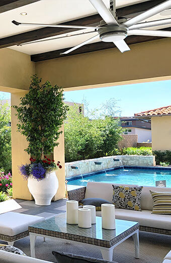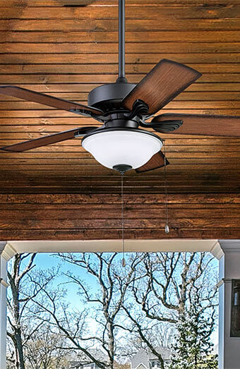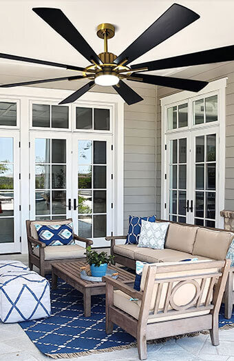 Installation of weather-rated ceiling fans for alfresco areas, patios, and covered outdoor spaces, designed to withstand humidity and outdoor conditions.